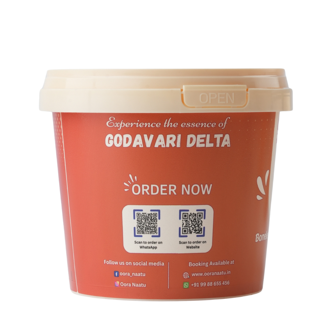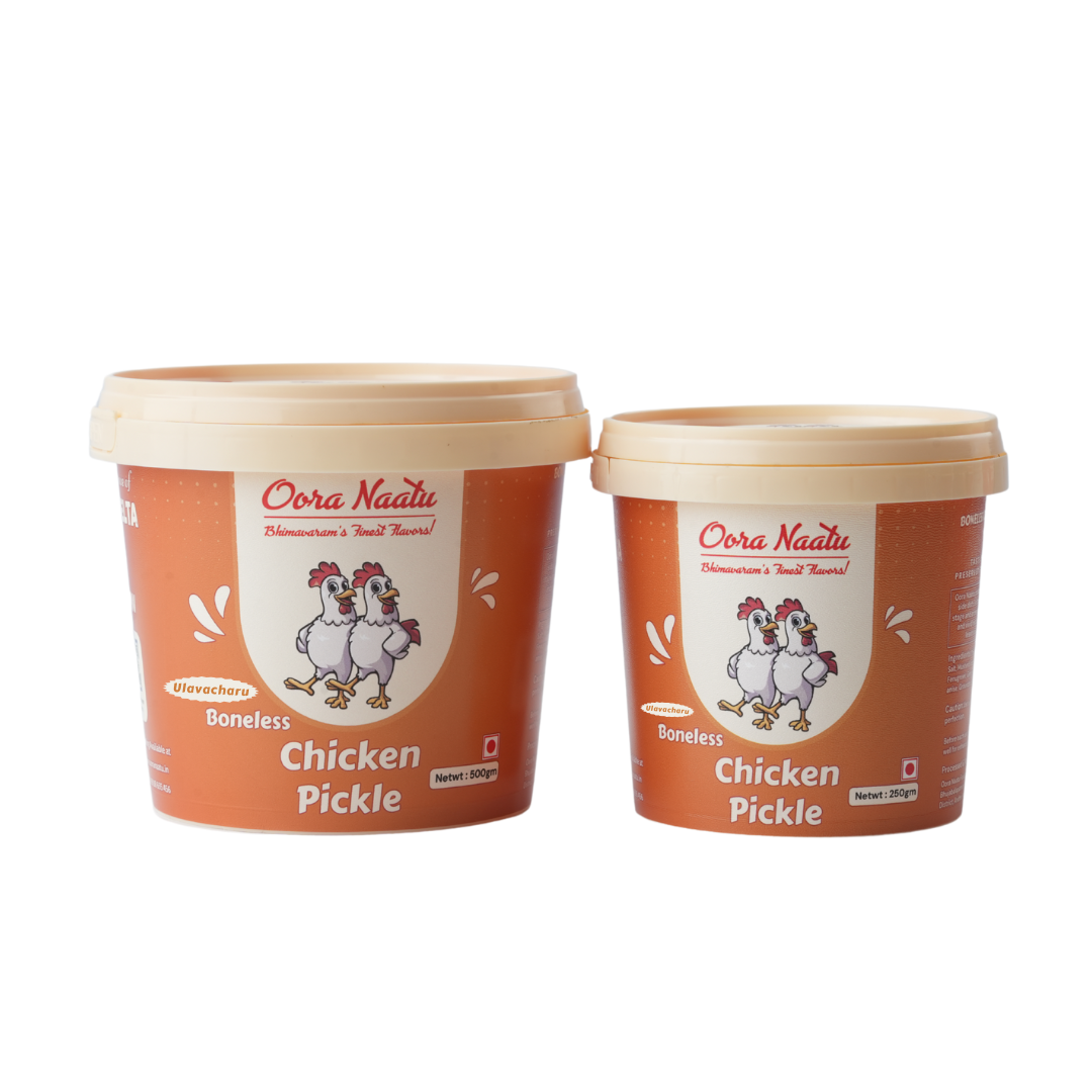 Delve into the rich heritage of Andhra’s culinary traditions with Oora Naatu Boneless Chicken Pickle. Crafted from succulent chicken pieces and blended with aromatic spices, this pickle offers a bold fusion of tang, spice, and meaty depth.