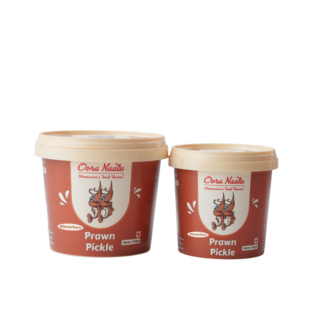 Experience the vibrant coastal flavors of the Godavari Delta with Oora Naatu Boneless Prawn Pickle. Made from succulent, handpicked prawns and infused with time-honored Andhra-style spices, every mouthful delivers a burst of tangy, spicy, and ocean-fresh goodness. Enjoy the taste of traditional homemade pickles straight from the coast to your plate.